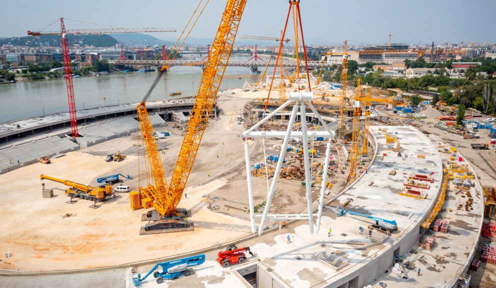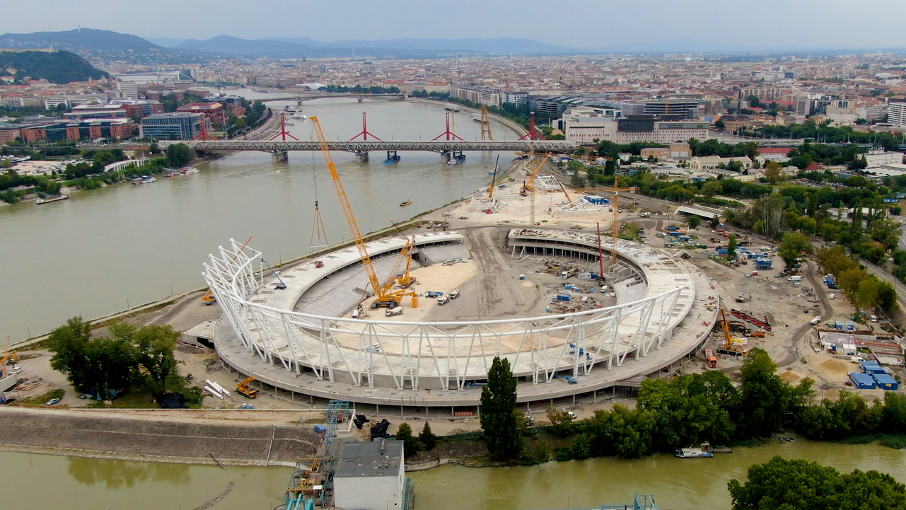 The stadium has a usable area of 67,680 m². For the foundations, 1,200 tons of reinforced steel and 13,000 cubic meters of concrete were used. A total of 2,600 piles were drilled, with a combined length of 42 km. For the structural works, 4,300 tons of reinforced steel and 40,000 cubic meters of concrete were used. The rigid metal roof structure consists of 48 “diamond”-shaped elements, each weighing nearly 100 tons. The stadium roof is supported by a uniquely tensioned cable system, a solution unprecedented in Hungary. The total weight of the roof exceeds 18,000 tons. The playing field was designed asymmetrically, allowing spectators to follow the running and jumping events more closely. Almost 7,000 m² of turf were installed.