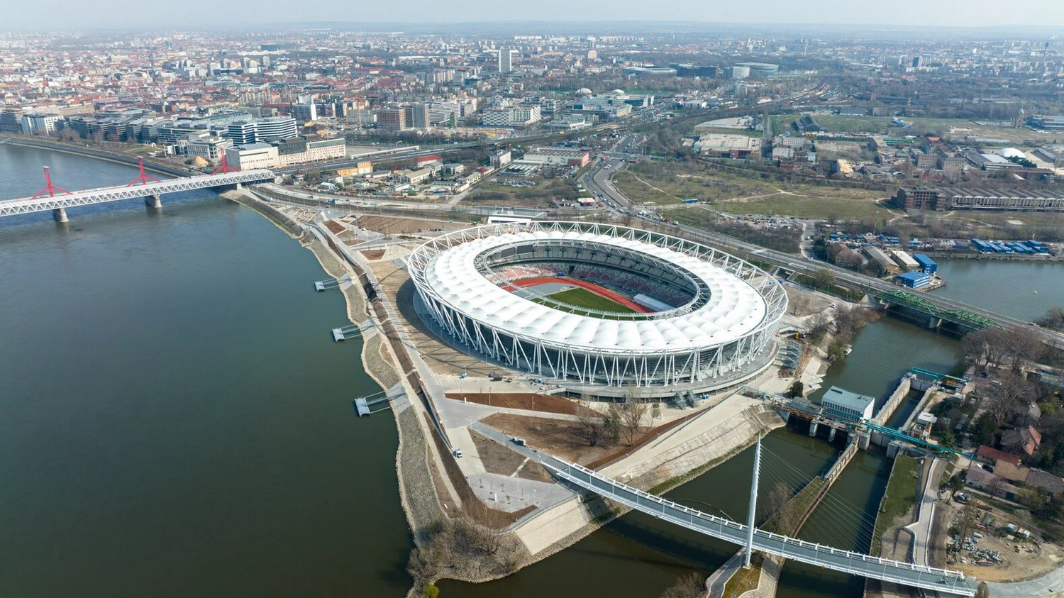 The roof structure, designed and built by the KÉSZ Group, is the world’s first “Open Arena”: thanks to its unique solutions, the stadium can host sports activities throughout the year, while the public park and outdoor training grounds open to the community complete the overall concept.