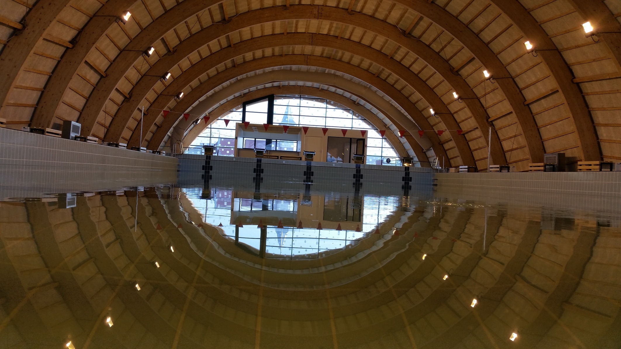 The educational swimming pool in Luduș was built under a national investment programme, with KÉSZ Romania acting as general contractor. The project involved the use of modern glued-laminated timber structures, advanced building-services installations and pool technology to create a sports facility of around 3,000 m², centred on a 25-metre training pool.