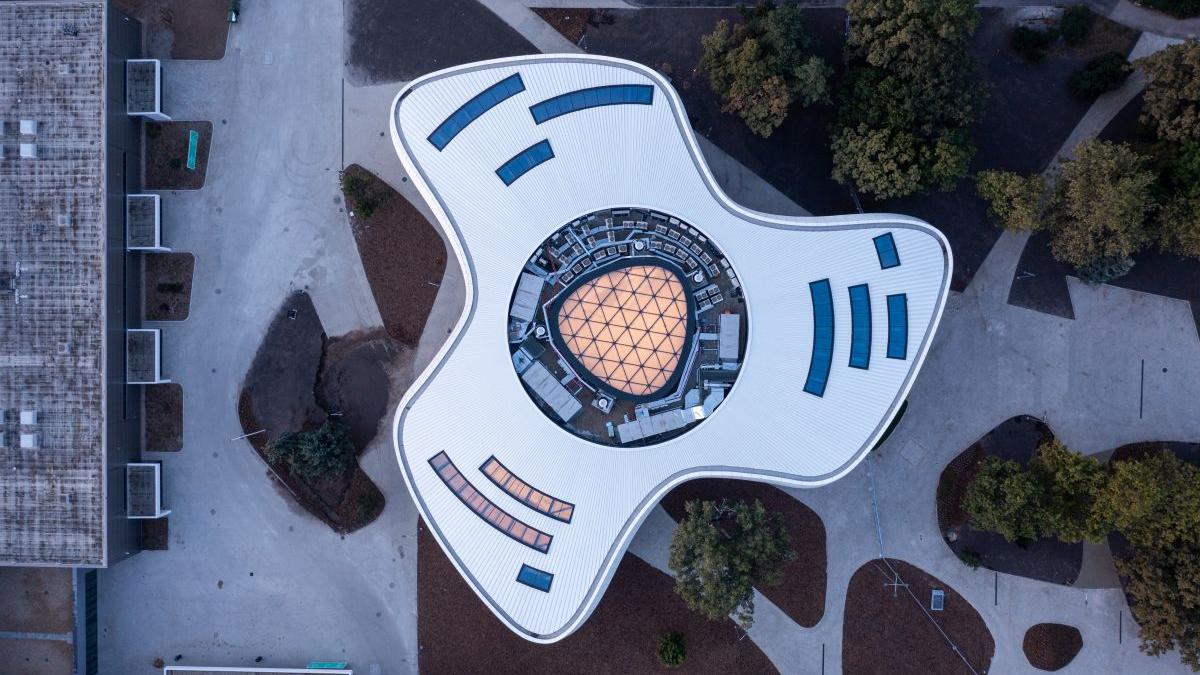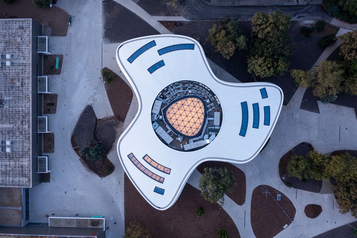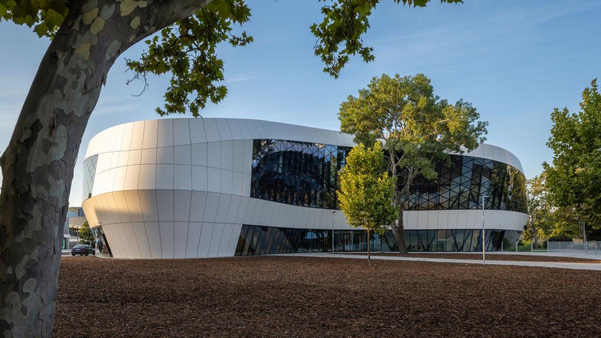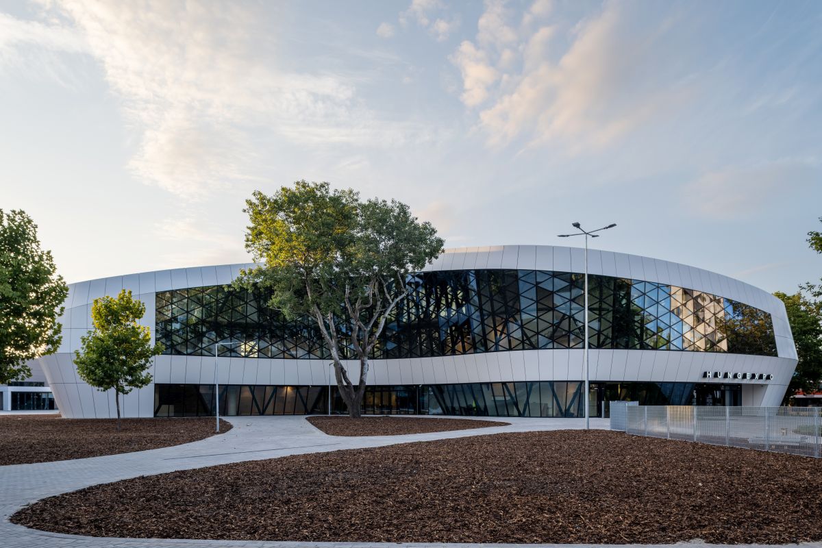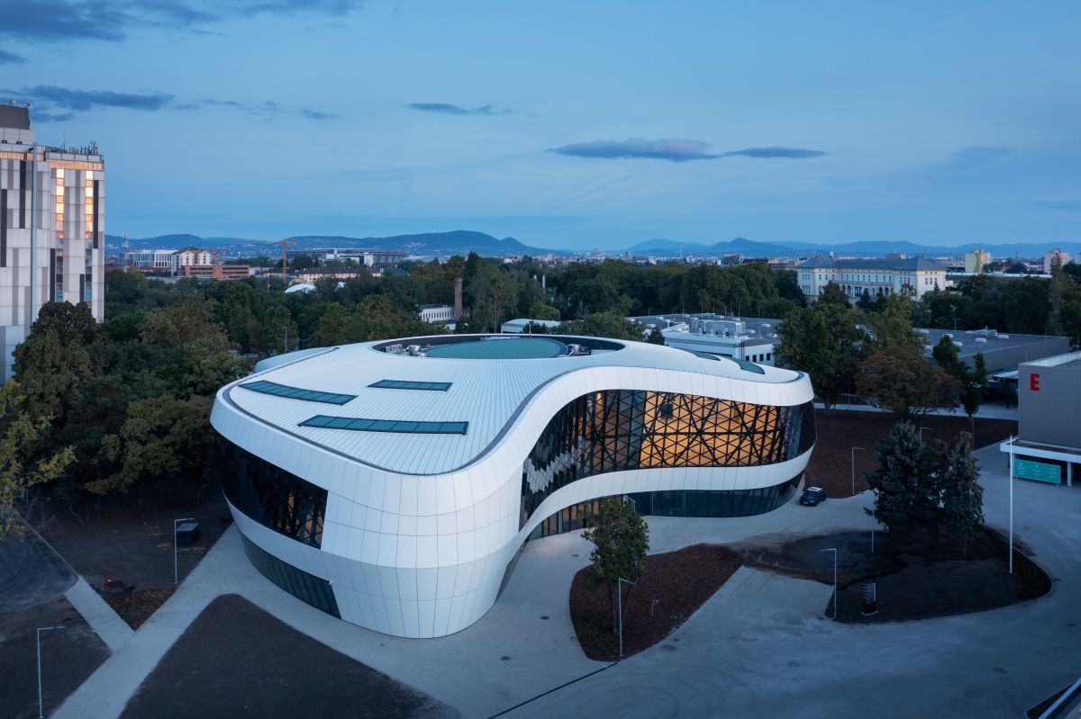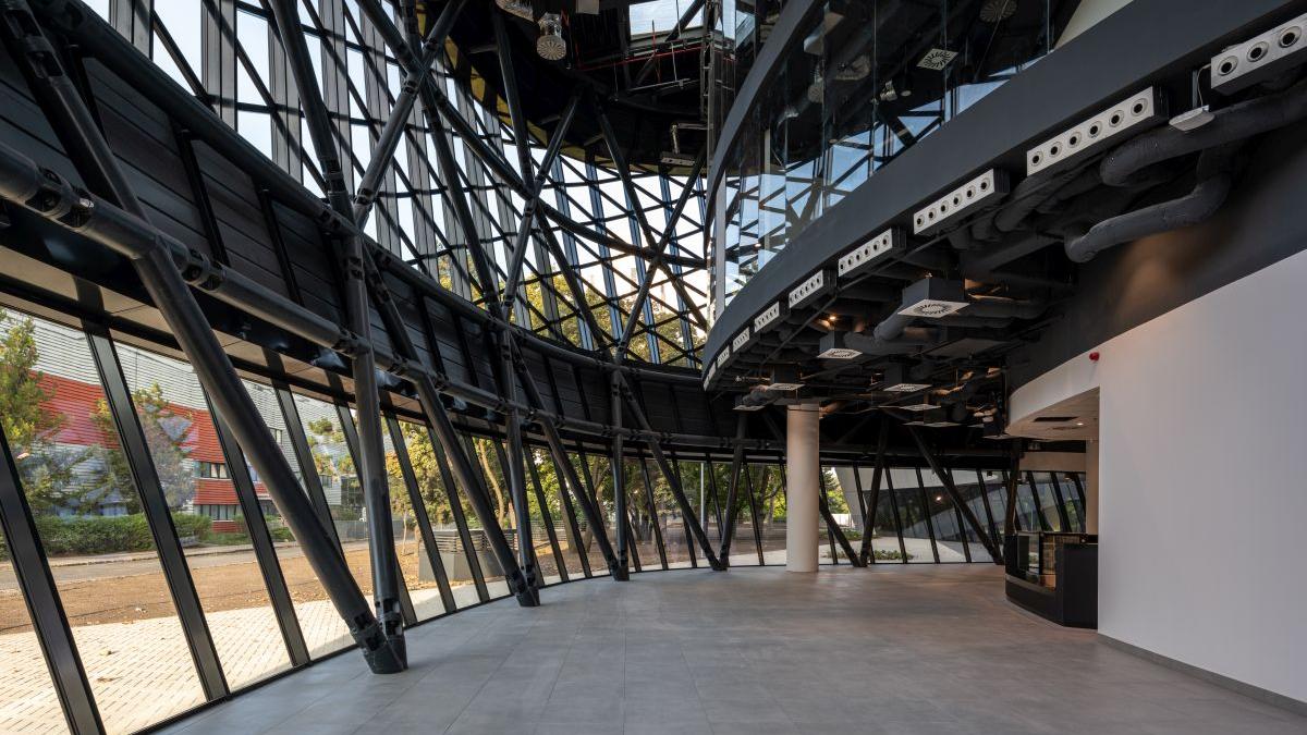A központ új, irodahelyiségekkel és bemutatótermekkel ellátott fogadóépületéhez csapatunk készítette el az egyedi, szabadformájú acélszerkezetű homlokzat terveit. A forgásszimmetrikus rácsszerkezet kialakítása a különböző alapterületű vasbeton tartószerkezethez igazodik, míg a tető különleges formáját egy gömbfelületre illeszkedő geometria biztosítja. A tervezés parametrikus modellezéssel zajlott, amely a fő statikai ellenőrzéseket és a részletes csomóponti kialakítást is magában foglalta – mindezt innovatív mérnöki módszerekkel támogatva.