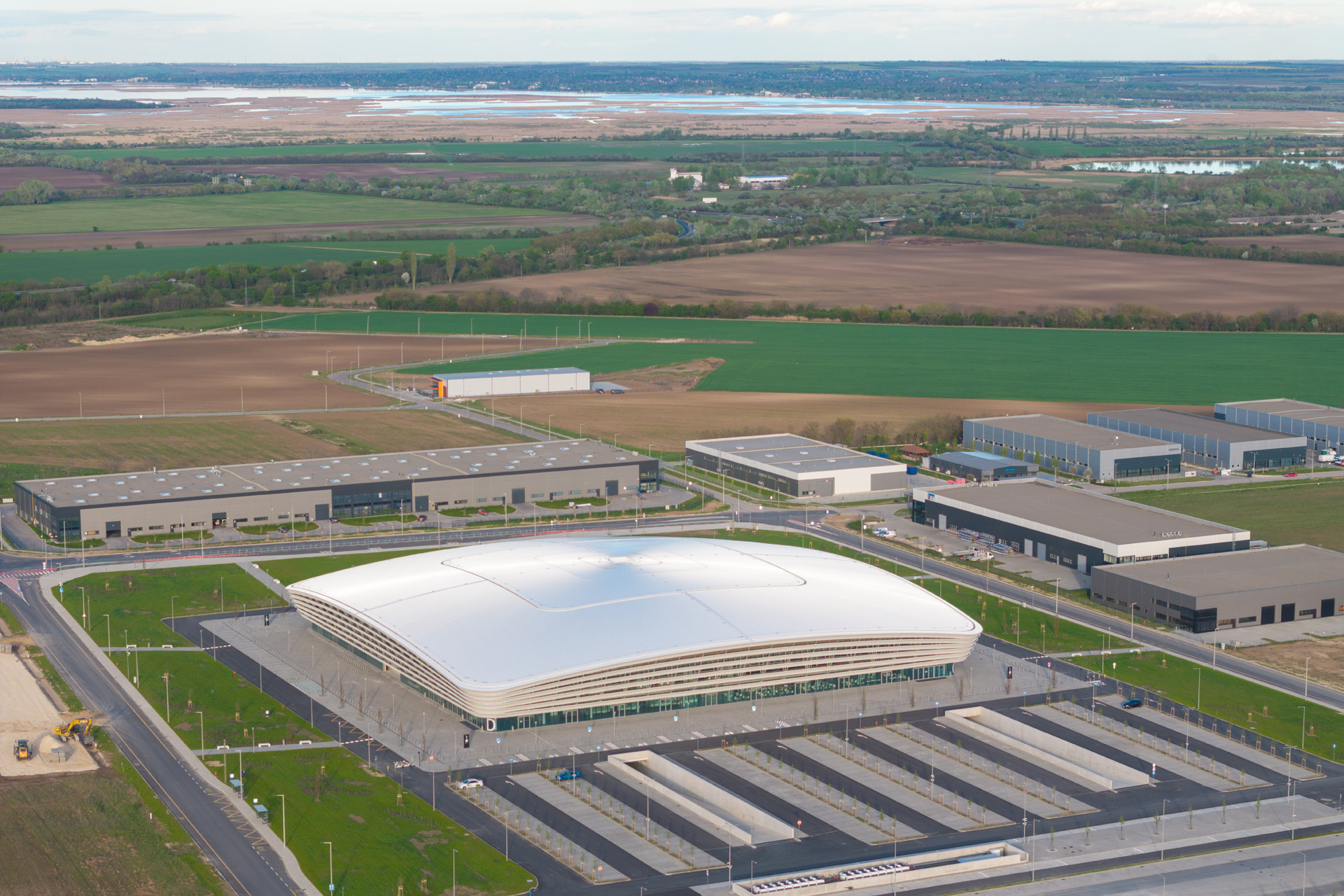 Echipa de proiectare a KÉSZ România a oferit suport profesional în cadrul proiectului sălii multifuncționale de evenimente și sport Alba Arena din Székesfehérvár, contribuind la consolidarea capacității de proiectare a grupului de companii. Clădirea, cu o suprafață de 10.000 m², are o structură metalică de aproximativ 1.750 de tone, sprijinită pe o placă de beton așezată pe 757 de piloți forați din beton armat, precum și pe structura monolită și elementele prefabricate ale tribunelor. Clădirea este înconjurată de o învelitoare din tablă, iar deasupra acesteia se întind 15 grinzi cu zăbrele, fiecare având o lungime de 60 de metri.