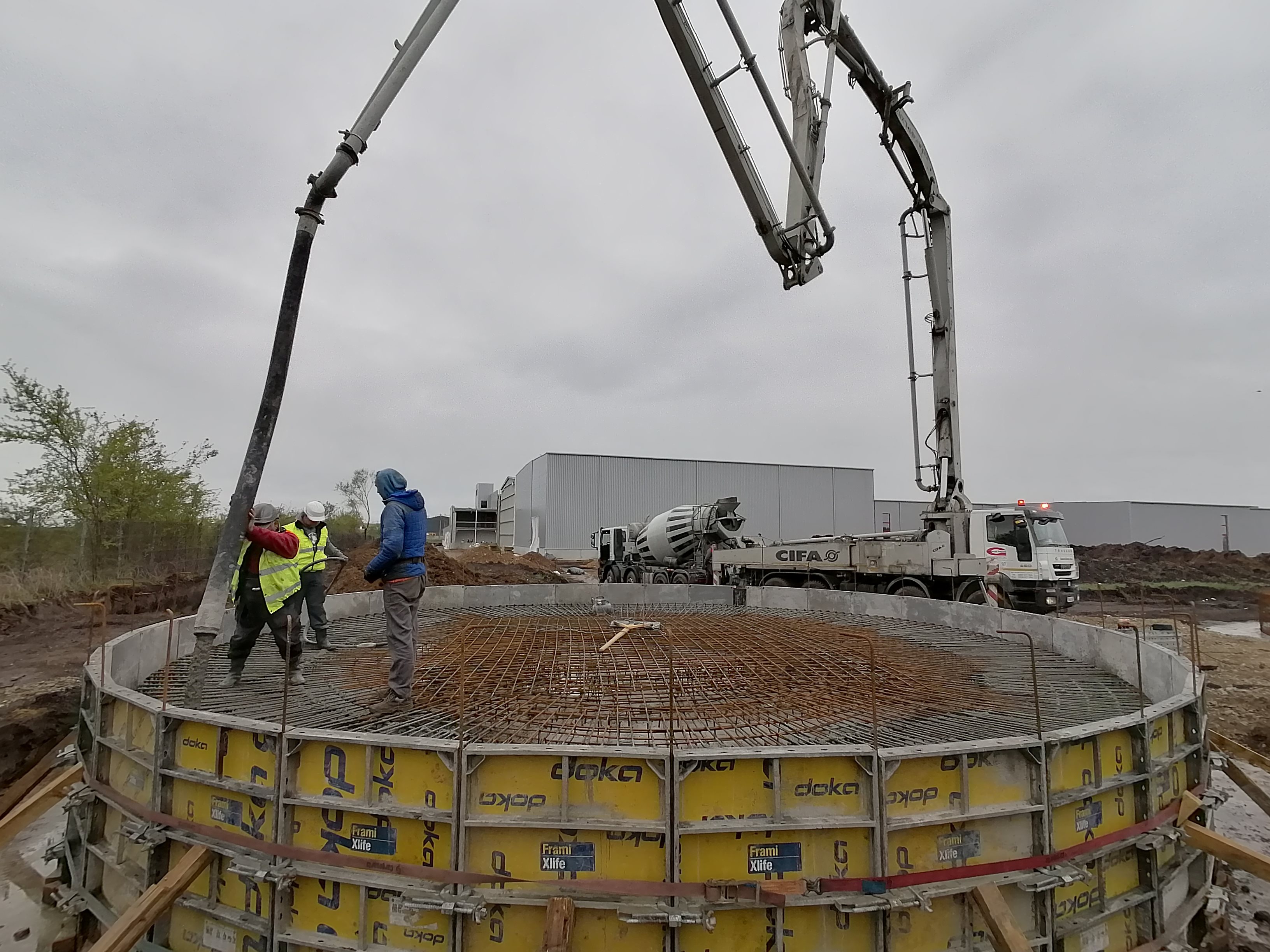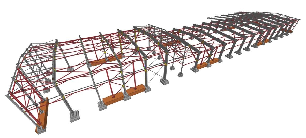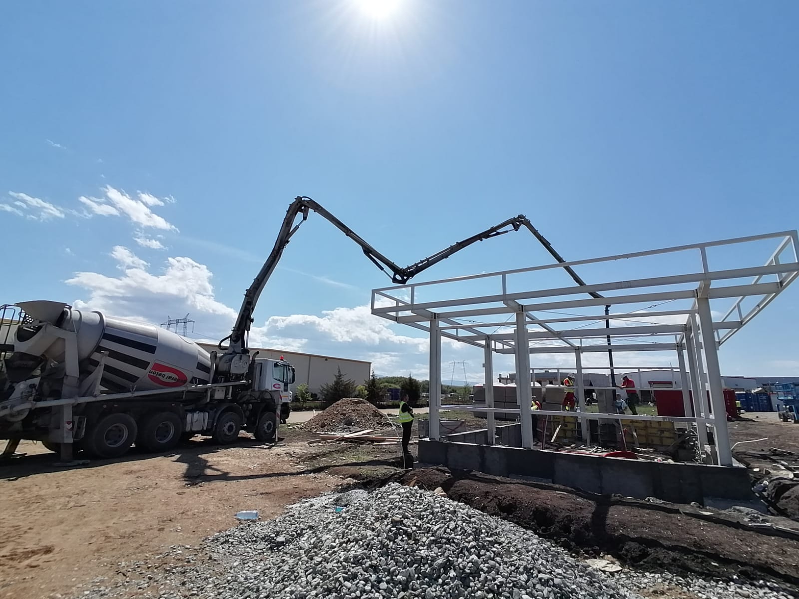 Structura industrială a clădirii a început cu fundații izolate din beton monolit, la care s-au conectat elemente prefabricate din beton armat pentru grinzi principale și elemente secundare din oțel. Fațada a fost realizată printr-o combinație de panouri de soclu cu trei straturi și panouri sandwich, iar acoperișul a fost închis cu tablă trapezoidală cu profile înalte, asigurând durabilitate industrială și performanță termică.